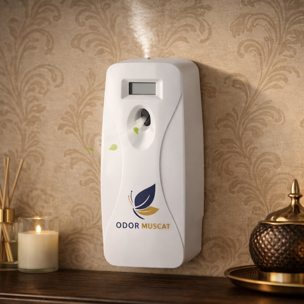 Wall Mounted Programmable automatic dispenser for restrooms, corridors, and high-traffic areas. Set your preferred spray interval and enjoy consistent, hands-free freshness 24 hours a day.