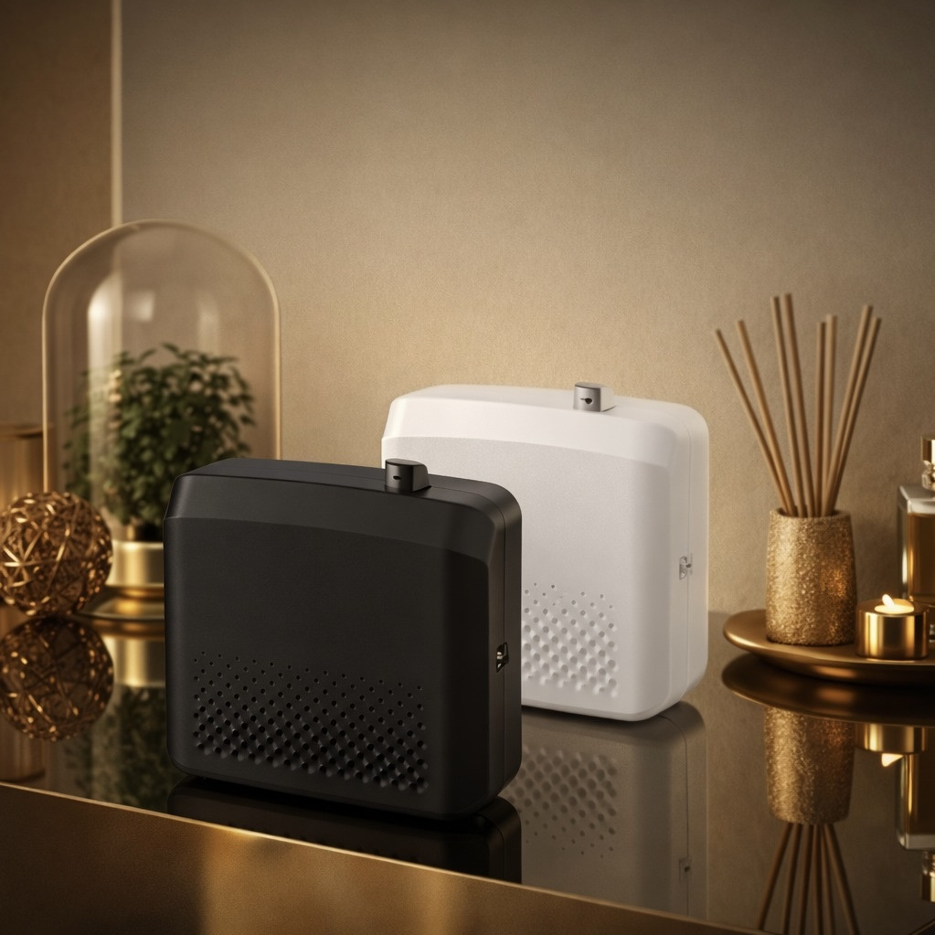 Desktop or Wall A smart two-fluid atomization diffuser controlled via the Scent Master app. Compact at 160×86.5×205mm with a 200ml capacity, it delivers precise fragrance control at home or in the office — quietly and efficiently.